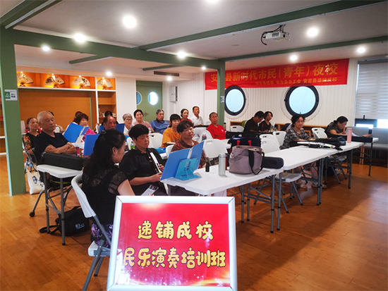 活動現(xiàn)場,遞鋪分院特邀的民樂教師先從曲目節(jié)奏、樂器配合等基礎(chǔ)要點入手,逐句拆解演奏技巧,再通過分組練習、整體合排的方式,幫助學員攻克演奏難點。短短半天時間,學員們便熟練掌握了《茉莉花》的合奏技巧,悠揚的旋律在文體中心內(nèi)反復回蕩,引得不少路過的居民駐足聆聽。