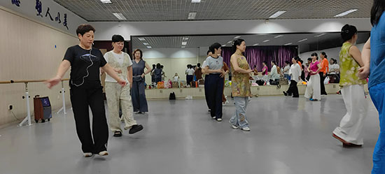 簡(jiǎn)短而莊重的開班儀式結(jié)束后,兩位老師便馬不停蹄地投入到了緊張而有序的教學(xué)中。她們首先帶領(lǐng)學(xué)員進(jìn)行熱身走步,過程中,兩位老師耐心細(xì)致,不放過任何一個(gè)細(xì)節(jié),親自示范步法與手勢(shì),讓學(xué)員們能夠準(zhǔn)確掌握每一個(gè)動(dòng)作要領(lǐng)。隨后,根據(jù)學(xué)員的特點(diǎn)和自身優(yōu)勢(shì),將學(xué)員們巧妙地分為花旦和小生組,進(jìn)行有針對(duì)性的教學(xué)。在兩位老師的悉心指導(dǎo)下,學(xué)員們迅速進(jìn)入狀態(tài),全神貫注地認(rèn)真練習(xí),現(xiàn)場(chǎng)學(xué)習(xí)氛圍濃厚。不一會(huì)兒,學(xué)員們便轉(zhuǎn)入了越劇經(jīng)典劇目《打金枝·闖宮》的排練中。大家各展風(fēng)采,將越劇的韻味展現(xiàn)得淋漓盡致,現(xiàn)場(chǎng)氣氛熱烈而有序,仿佛一場(chǎng)精彩的越劇盛宴正在徐徐拉開帷幕。