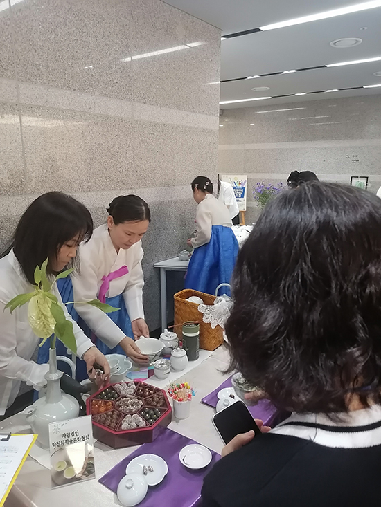 吳震老師自詡“茶的傳譯者”,訪問韓國時,先在首爾拜會了與妙西有著不解之緣的韓國《茶的世界》崔錫煥社長,特意準(zhǔn)備了載有《陸羽在浙江》專文的《陸羽茶文化研究》學(xué)刊及其副主編的《茶樹栽培與茶園管護(hù)》教材、“愛奇葩·陸小羽”茶文創(chuàng)布藝產(chǎn)品、妙西霞幕茶和湖筆等,分贈韓國的友好人士,并在“韓中日茶學(xué)術(shù)研討會”PPT茶圖文演示收官環(huán)節(jié),重點(diǎn)宣傳、推介了杼山、妙西鎮(zhèn)、西塞山旅游度假區(qū)和“東亞文化之都——茶生活品質(zhì)之城”江南湖州。(曹炫芬、郎正凱)
