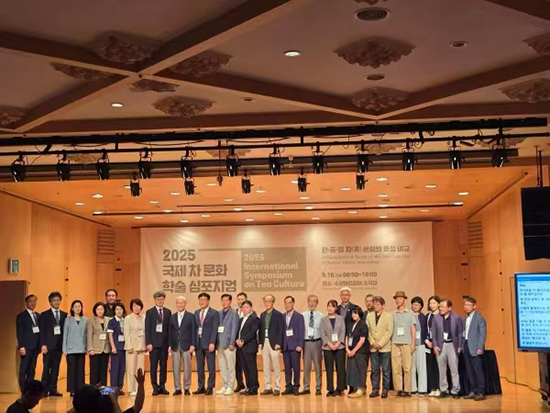 2025韓中日國際茶文化研討會領(lǐng)導(dǎo)、嘉賓、專家學(xué)者合影(右起第5人為吳震)