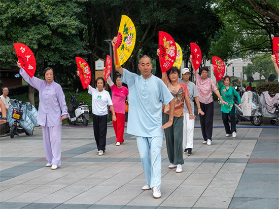 10月13日,陽光正好,微風(fēng)不燥。安吉縣生態(tài)廣場上一派熱鬧景象,由安吉縣社區(qū)教育學(xué)院遞鋪分院組織的老年太極班日常訓(xùn)練活動(dòng)在此順利開展。來自安吉縣各個(gè)村鎮(zhèn)、社區(qū)的30多位老年學(xué)員齊聚一堂,以一招一式的太極動(dòng)作,展現(xiàn)著銀齡群體的活力與風(fēng)采,成為生態(tài)廣場上一道獨(dú)特且動(dòng)人的風(fēng)景線。?