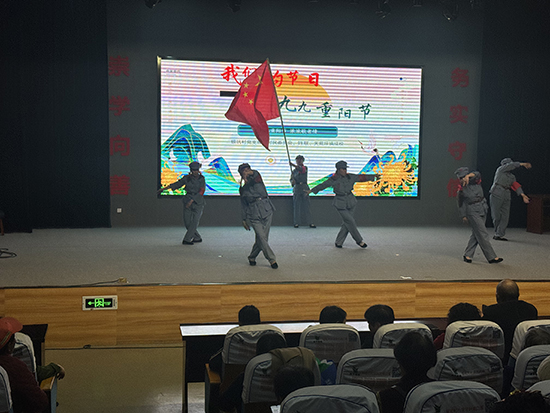 晚會以融合傳統與現代的文藝演出為核心,天荒坪成校老年學員成為亮點。葫蘆絲班學員身著統一服飾,演繹《月光下的鳳尾竹》等經典曲目,婉轉音韻承載著對傳統文化的堅守;歌詠班則獻上歌舞《紅梅贊》,以鏗鏘舞步與激昂歌聲詮釋革命精神,舞臺光影間勾勒出“銀齡風采”的生動畫卷。此類社區文藝實踐,呼應了全國重陽活動中“傳統文化與現代元素創新融合”的節日理念,使尊老敬老內涵更具感染力。