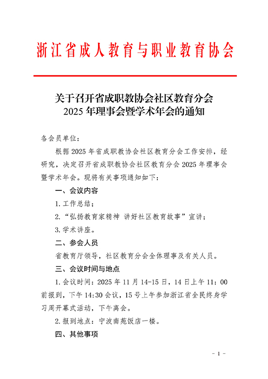 關于召開省成職教協會社區教育分會2025年理事會暨學術年會的通知