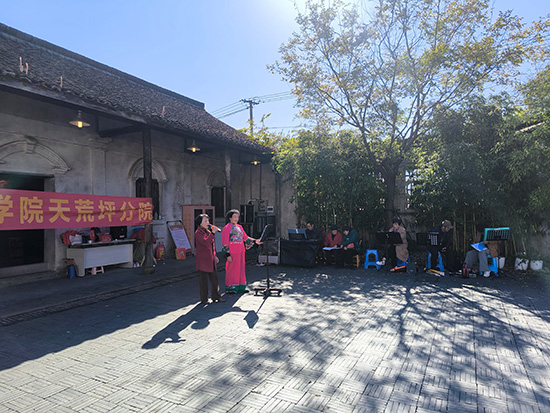11月19日,天荒坪鎮(zhèn)馬吉村粟裕紀念館門前操場化作紅色文化舞臺。安吉社區(qū)教育學院天荒坪分院(天荒坪成校)老年歌詠班全體學員自發(fā)組織學期成果展演,以“紅歌+舞蹈”形式獻上20個節(jié)目。天荒坪成校校長汪華忠、馬吉村村委領(lǐng)導全程觀摩,村婦女主任陳凌飛擔任主持,吸引百余名村民駐足。