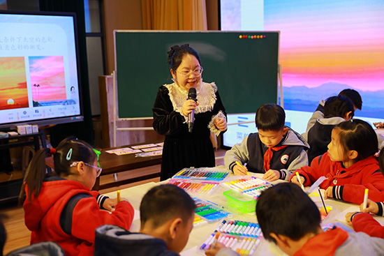 在長興縣實驗小學(xué),以“聚焦多樣評價,探索量規(guī)優(yōu)化”為核心,呈現(xiàn)多學(xué)科融合的評價實踐樣態(tài)。語文課堂上,倪薇老師的《貓和老鼠》以觀察細致度、表達生動性為評價維度,讓低年級寫話評價趣味化;道德與法治課上,孫雪菲老師《紅紅火火中國年》通過“集五福”評價表、家長評價等多元形式,實現(xiàn)傳統(tǒng)文化學(xué)習(xí)的全流程評價;美術(shù)課上,馬雯燁老師《絢彩的天空》則借助師生共評量表,在色彩實踐中夯實知識、激發(fā)創(chuàng)意。