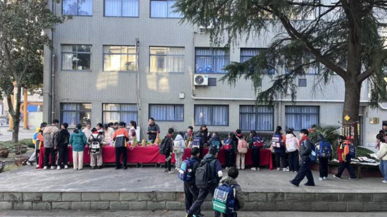 11月25日下午,諸暨市楓橋鎮洪綬小學廣場熱鬧非凡、人頭攢動。廣場四周或擺放、或懸掛著一系列充滿巧思的創意作品——落葉手工與環保手工作品琳瑯滿目,定格了秋日意趣。同學們駐足觀賞,時而對著心儀作品輕聲交流,時而在自己的作品前展露欣喜笑容,現場洋溢著濃厚的文化與實踐氛圍。