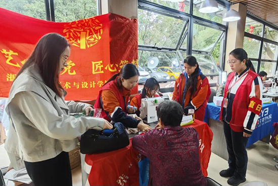 12月9日,第三黨支部組織黨員教師和學生志愿者至橋西村開展縫補志愿服務。