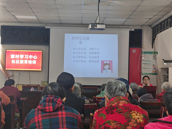 近日,安吉縣章村鎮章村村文化禮堂暖意融融,由安吉縣社區教育學院章村學習中心組織的糖尿病預防知識講座順利舉辦,57名村民齊聚一堂,學習健康知識。