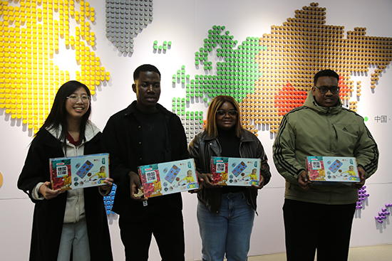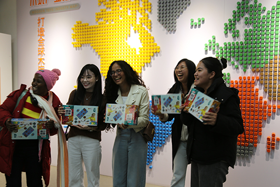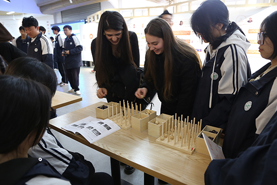 參觀結束后,木玩游戲挑戰點燃全場熱情。在學校專業教師、學生助理裁判的組織下,技巧球、投壺、魯班鎖、漢諾塔等兼具技巧與腦力的項目有序開展。中外師生分組競技、默契配合,在賽前練習與正式比拼中切磋交流,賽場之上歡聲笑語不斷。木玩專業學生的專業引導、英語組教師的順暢溝通,讓這場跨文化互動更顯順暢與暖心。