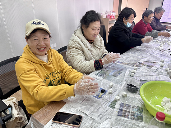 來自各個小區(qū)的微網(wǎng)格長們主動發(fā)揮帶頭作用,一邊耐心指導(dǎo)老年居民掌握包湯圓技巧,“包湯圓阿拉寧波人都會,但是包起來其實需要耐心,先搓起一個面團捏成小碗狀,中間放上餡料,然后再小心搓圓,這樣包出來的湯圓才不會‘破肚子’,豬油芝麻餡湯圓最香嘞。”微網(wǎng)格長們借著活動契機一邊與大家拉家常,詢問生活近況,也分享著過往的冬至習(xí)俗與生活趣事。