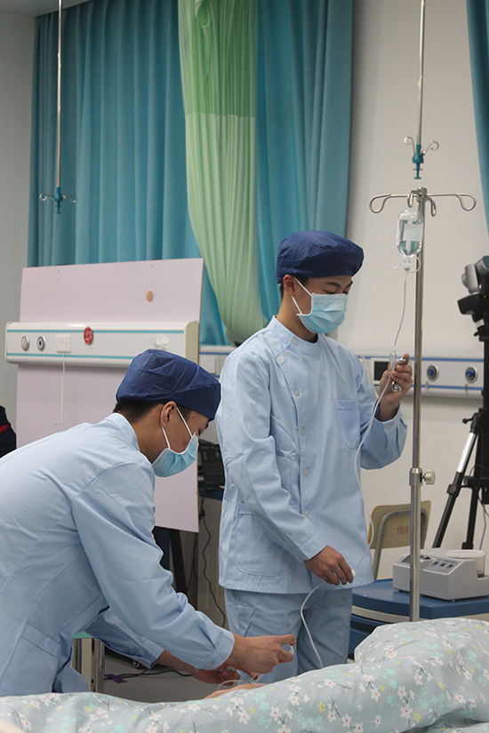 第一賽道要求2名選手協(xié)作完成呼吸心跳驟停患者救護(hù),含雙人心肺復(fù)蘇與靜脈輸液,15分鐘內(nèi)完成,占總成績(jī)50%;第二賽道由組內(nèi)抽簽1人完成老年患者跌倒照護(hù),涉及右踝關(guān)節(jié)扭傷包扎與輪椅運(yùn)送,同15分鐘完成,占40%。兩賽道均配標(biāo)準(zhǔn)化病人還原真實(shí)場(chǎng)景,評(píng)委以專(zhuān)業(yè)公正態(tài)度評(píng)分,保障結(jié)果可信。