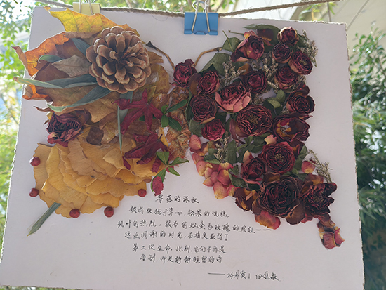 同學(xué)們充分發(fā)揮想象力與動手能力,將一片片平凡的落葉賦予新的生命。有的以暖黃、橙紅等秋日色調(diào)拼貼出溫馨的校園場景,傳遞對校園生活的熱愛;有的用深淺不一的葉片勾勒出靈動的動物形象,寄托純真的美好期許;還有的將落葉與文字創(chuàng)意結(jié)合,借葉片的紋理訴說內(nèi)心的細(xì)膩情緒,真正踐行了“秋日情緒調(diào)色盤”的活動主旨。創(chuàng)作過程中,同學(xué)們不僅鍛煉了動手能力與審美素養(yǎng),更在專注創(chuàng)作中舒緩了學(xué)業(yè)壓力,實現(xiàn)了情感的表達與梳理。